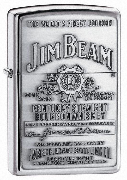 This Jim Beam Pewter Emblem High Polish Chrome Zippo Lighter is the logical choice for the lover of fine Kentucky bourbon. Made in the USA from sturdy and long-lasting metal, this officially licensed lighter has that signature Zippo click from the flint wheel ignition system. It also comes with a lifetime guarantee from Zippo and you can add your very own special touch with the engraving of up to four lines of text of your choice, in your choice of fonts for free of charge. It also has the backing of the Executive Gift Shoppe Guarantee of quality.