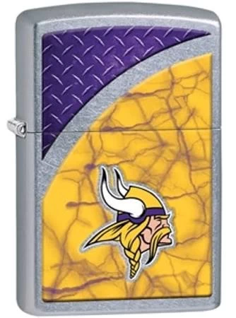 Give a gift that every fan of the Minnesota Vikings is sure to love, a classic Zippo lighter with free engraving on the back. Made of solid satin finish chrome, the front cover features that snarling Viking head logo that Minnesota fans love, along with the word Vikings along the lid. The free customization on the back creates a completely unique gift that will be used for years to come.