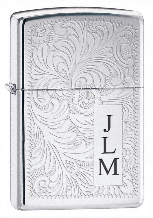 First released by Zippo in 1974, the Venetian is still one of Zippo’s most popular lighters. For over three decades, the timeless front and reverse floral pattern continued to be the most globally appealing lighter design Zippo has ever released. Made of polished silver chrome covered in intricate floral markings, it also has a smooth engraving area. Add your customization here free of charge for a one of a kind gift. Packaged in a gift box, this Venetian Zippo comes with the Zippo company’s famous lifetime guarantee.