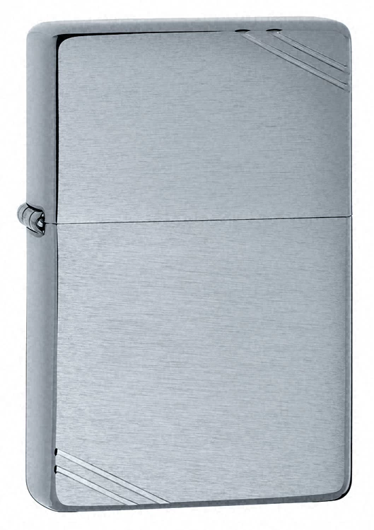 This vintage style brushed chrome Zippo Lighter takes understated style to a whole new level. It is constructed with the classic vintage Zippo design, sharp corners and double slashes at both the top right and bottom left corners. Made in the USA, this officially licensed lighter is made from sturdy metal and the user will hear that signature Zippo click with each and every light. Both the front and the back can be inscribed with the custom engraving of your choice free of charge, creating a unique, personalized gift for a stylish friend or loved one.