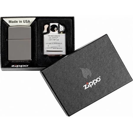 Model – ZO07658. Zippo 07658 – Lighter and Pipe Insert Combo. Dimensions: 1.44″ x 2.25″. Includes standard lighter and pipe insert. Black Ice. Boxed. Proudly made in the USA.