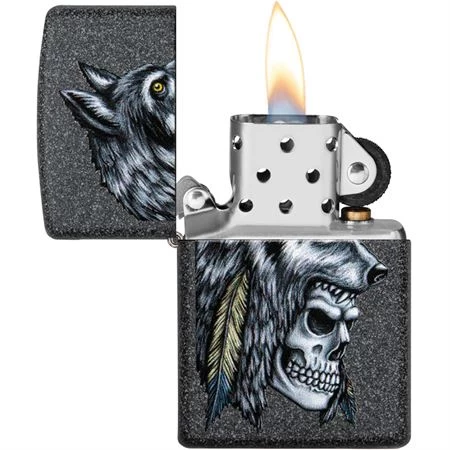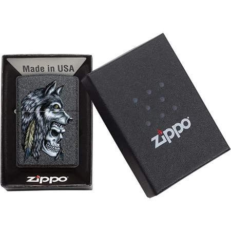 Model/Part Number – ZO09071. Zippo Lighters Wolf Skull Lighter. Dimensions: 0.5″ x 2.25″. Iron Stone. Boxed. Proudly made here in the USA.