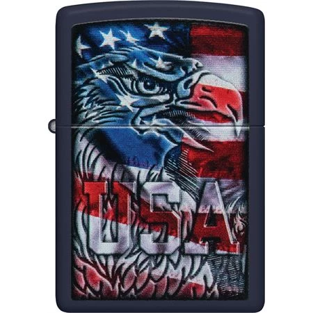 Model/Part Number – ZO23780. Zippo Eagle Flag Lighter. Dimensions: 2.25″ x 1.5″. Navy Matte. Boxed. Proundly made here in the USA.