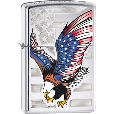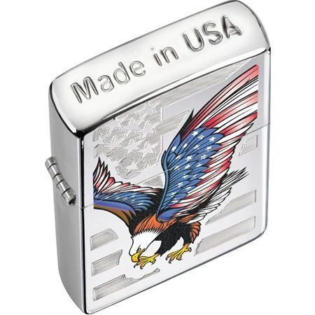 - Zippo 28449 – Eagle Flag with High Polish Chrome Finish